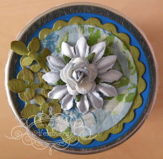 Creatijd was iets maken met decopatch. Nu zat er bij het prijsje wat ik vorige keer gewonnen had dit prachtige decopatch papier en piepschuim bloem. Daar een uitsteker van gemaakt voor in de mok met een label eraan. Zelf heb ik geen materialen voor decopatch. Het papier gewoon met tacky glue opgeplakt en daarna met Mod Podge dimensional magic erover heen. De zijkanten van de bloem heb ik geverfd.